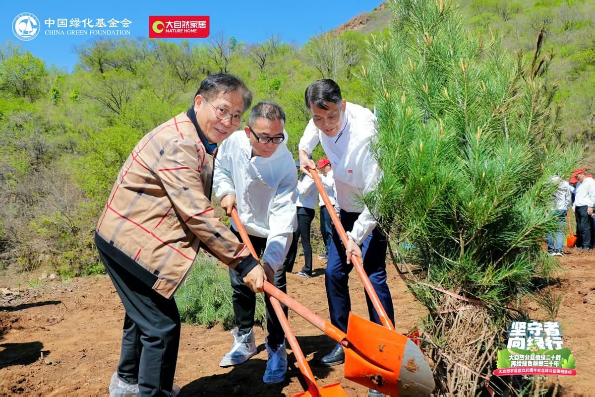 4月22日,值第56個(gè)世界地球日之際,大自然家居攜手中國(guó)綠化基金會(huì),于北京密云區(qū)啟動(dòng)“堅(jiān)守者·向綠行”公益植樹(shù)活動(dòng)。大自然家居以“成立30年、植樹(shù)20年”的雙里程碑,交出了一份“綠色智造”與“生態(tài)反哺”共生的可持續(xù)發(fā)展答卷?;顒?dòng)現(xiàn)場(chǎng),中國(guó)綠化基金會(huì)、北京市園林綠化局、北京林學(xué)會(huì)、中國(guó)林業(yè)科學(xué)研究院、中國(guó)林產(chǎn)工業(yè)協(xié)會(huì)、中國(guó)林業(yè)產(chǎn)業(yè)聯(lián)合會(huì)、中國(guó)木材保護(hù)工業(yè)協(xié)會(huì)、中國(guó)木材與木制品流通協(xié)會(huì)代表,大自然家居高層管理人員、全國(guó)核心經(jīng)銷(xiāo)商和供應(yīng)商代表,媒體以及大自然家居消費(fèi)者、公益植樹(shù)環(huán)保志愿者等各界人士,見(jiàn)證“中國(guó)綠色版圖”公益工程20年成果及未來(lái)十年計(jì)劃啟動(dòng)。